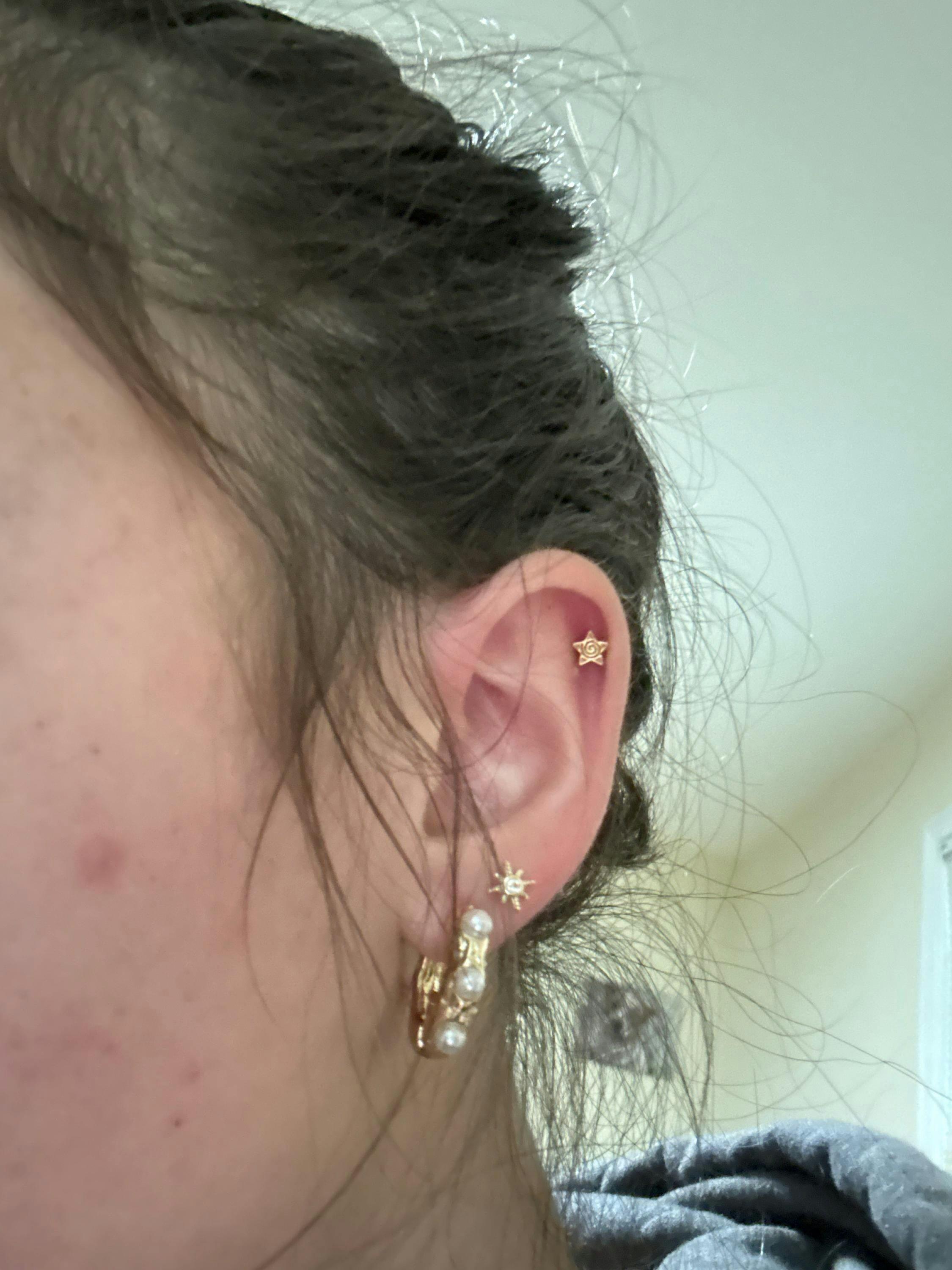 Can't get a nice photo so I'll just leave a review. I bought for a Philtrum piercing and it looks amazing. The sizing of the top is perfect and it sits nicely. I love the little detail on the star making it a stand out piece!