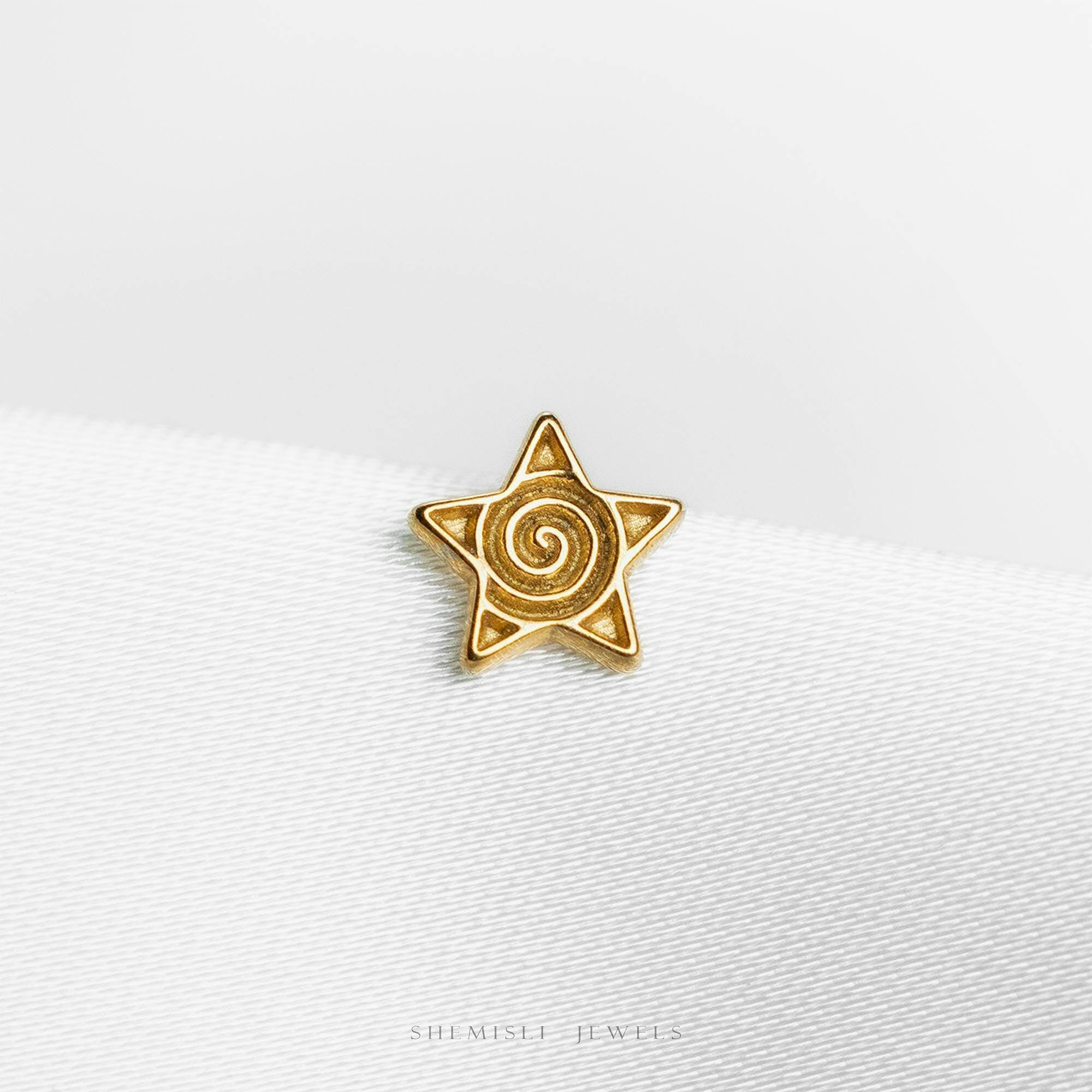 Tiny Star with Spiral Threadless Flat Back Earring, Swirl