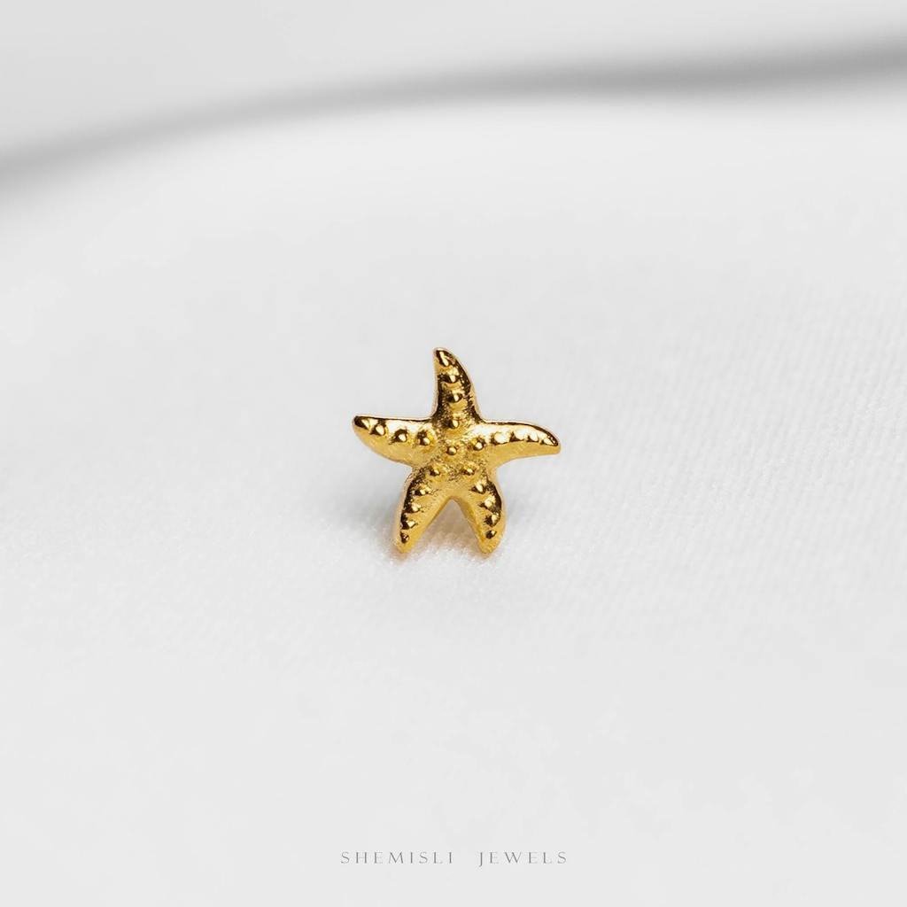 Tiny Starfish Threadless Flat Back Earring, 20,18,16ga, 5-10mm Unisex,