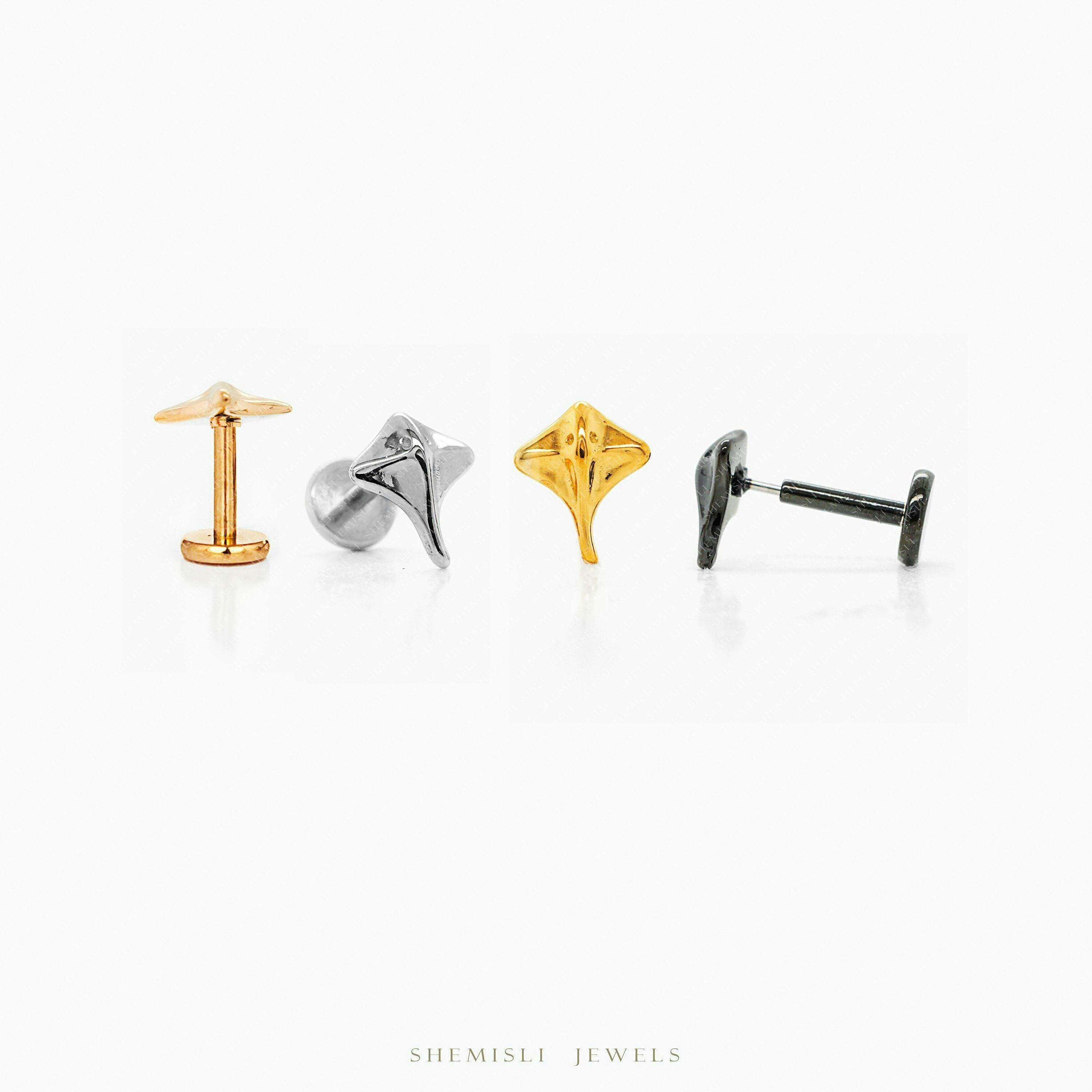 Tiny Stingray Threadless Flat Back Earring, 20,18,16ga, 5-10mm Unisex,