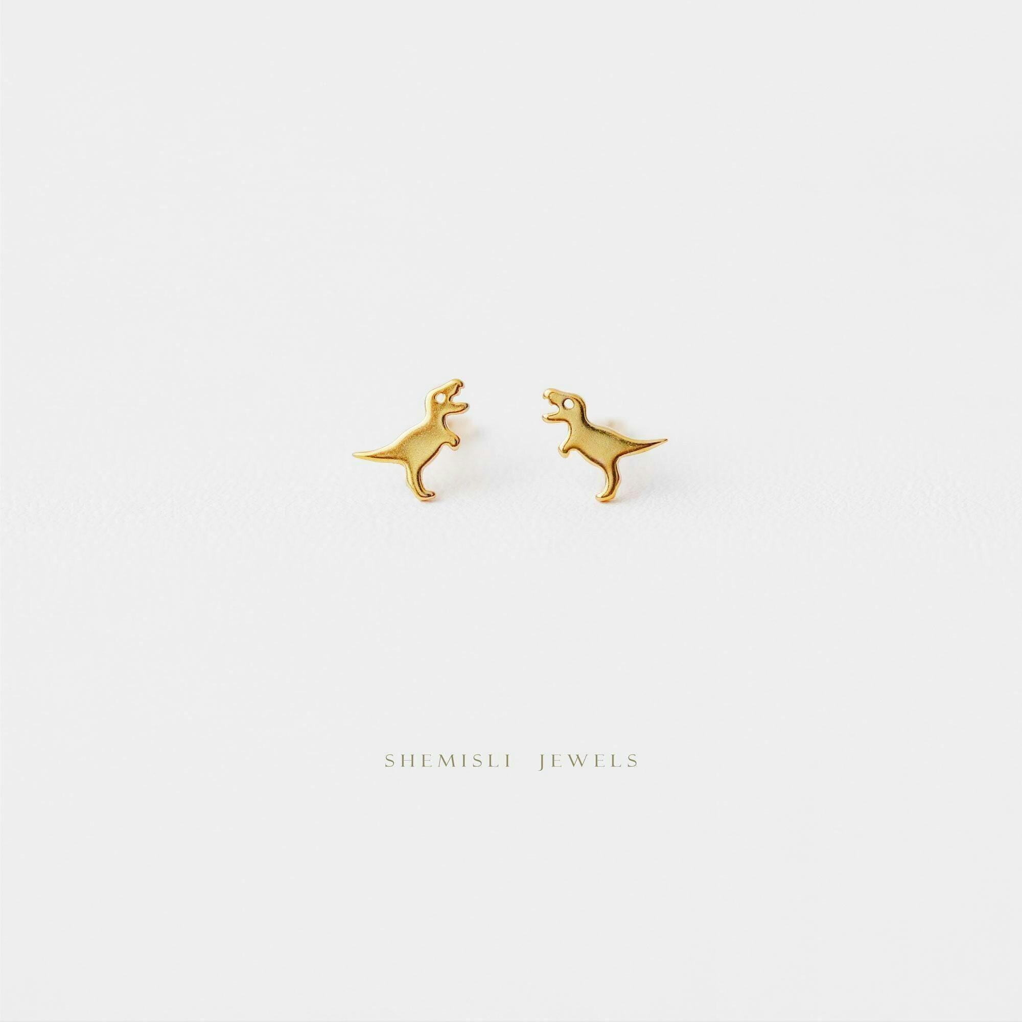 Tiny T-Rex Dinosaur Studs, Tyrannosaurus Earring, Unisex, Gold, Silver