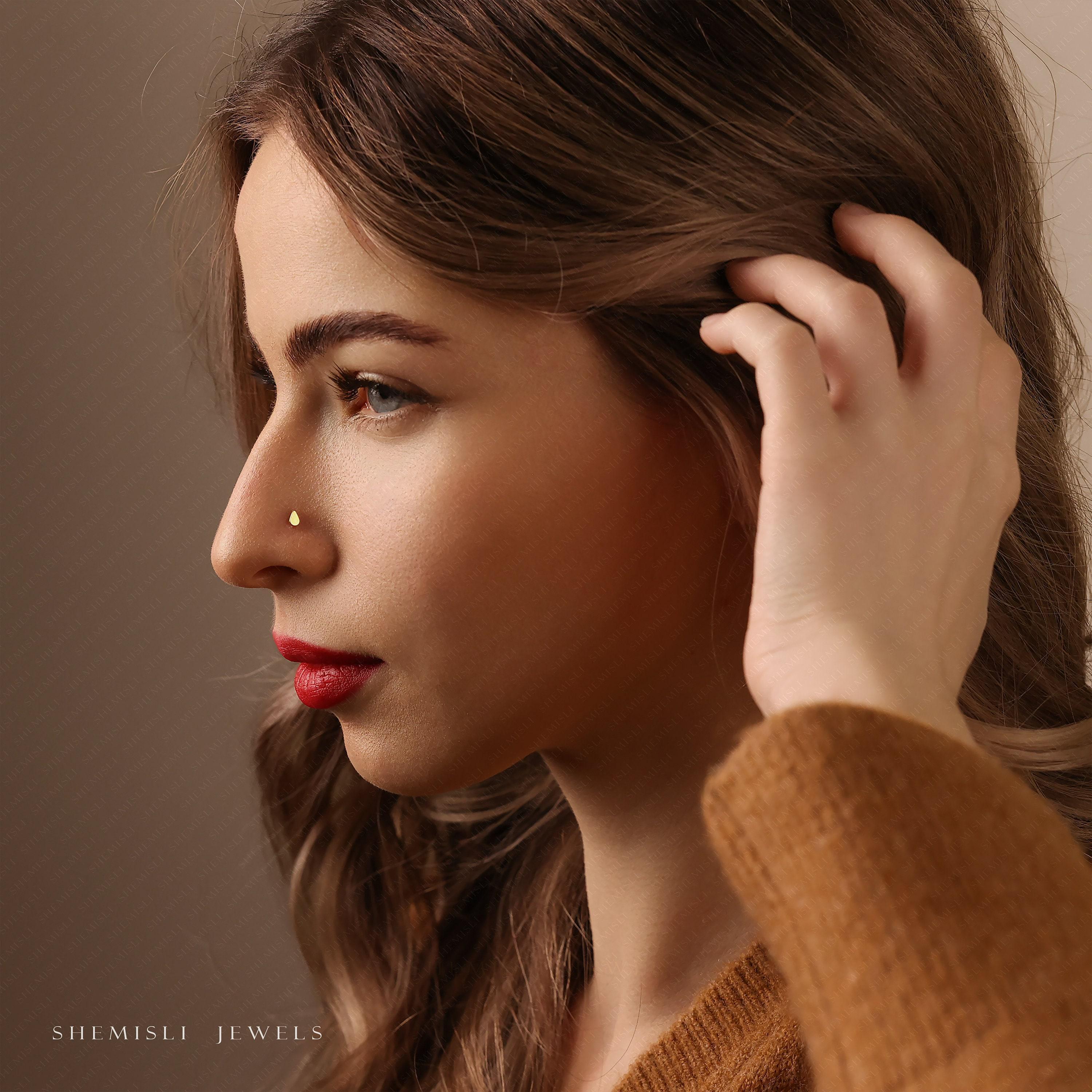 Teardrop Shape Nose Stud, Threadless Flat Back, Minimalist Style,