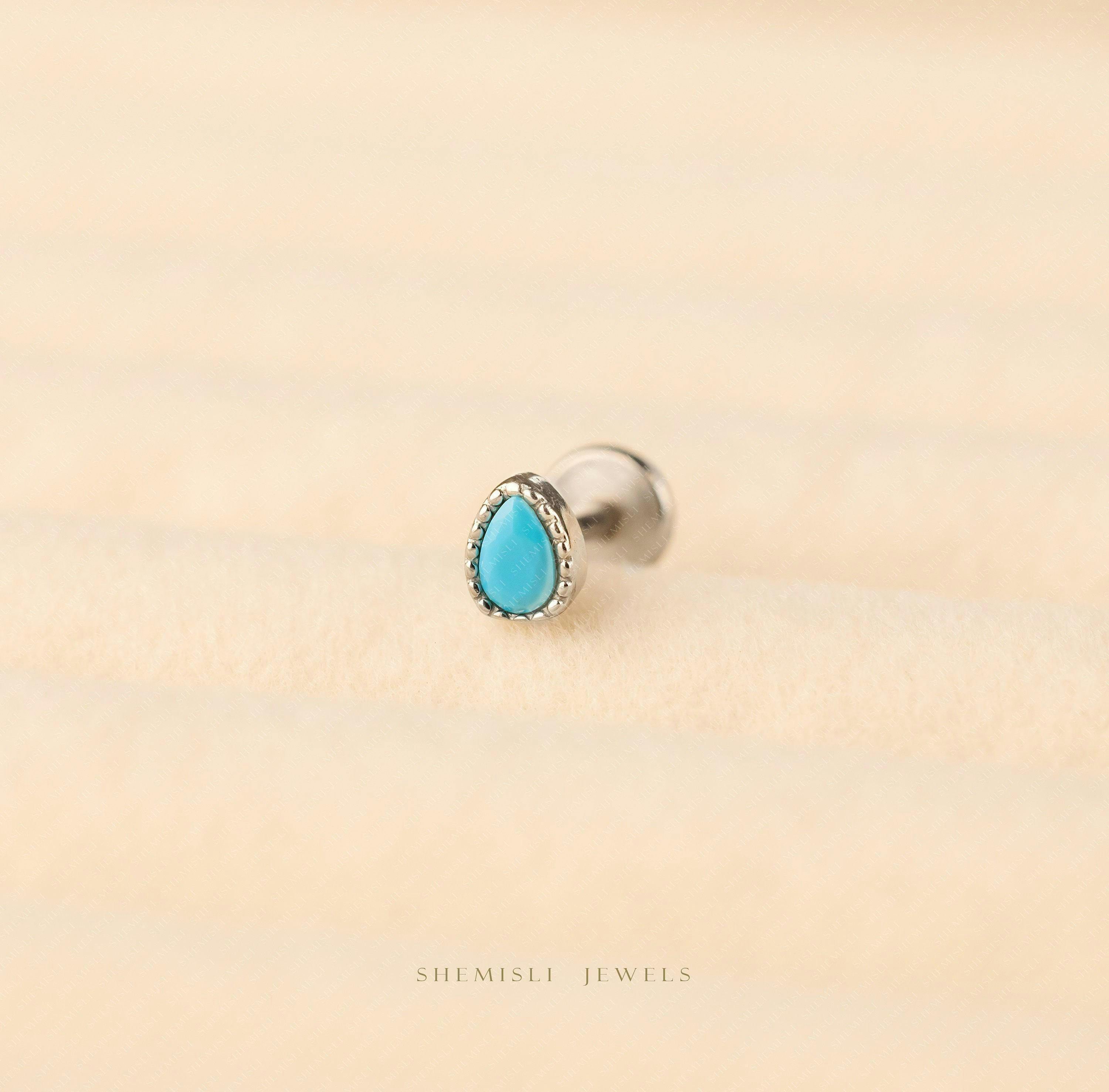 Tiny Teardrop Turquoise Threadless Flat Back Tragus Stud, 20,18,16ga,