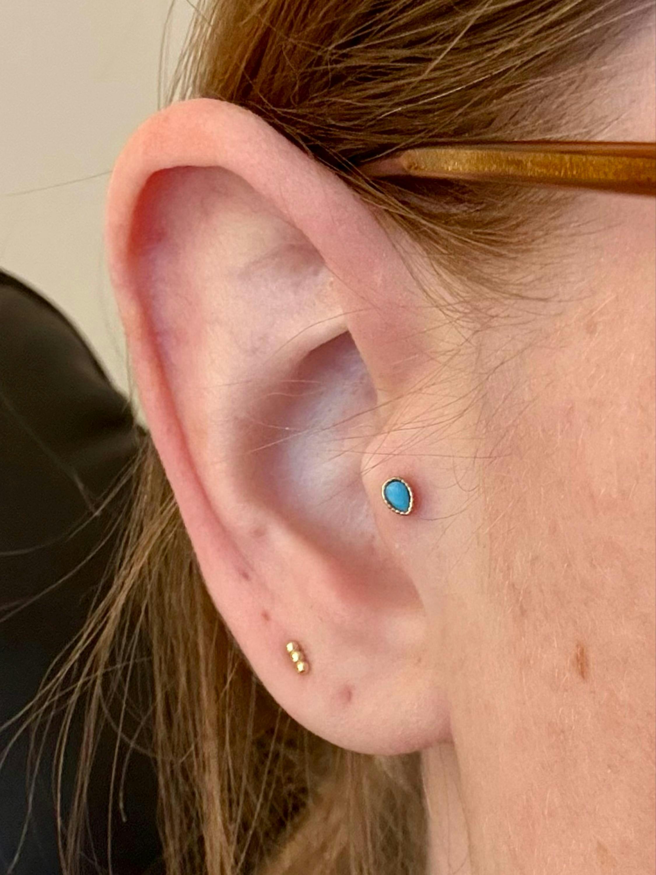 Tiny Teardrop Turquoise Threadless Flat Back Earring, 20,18,16ga, 5-10mm