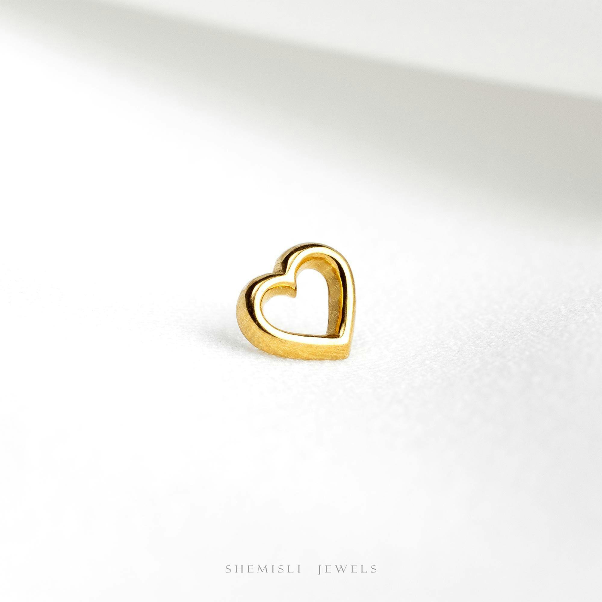 Tiny Open Heart Threadless Flat Back Earring, 20,18,16ga, 5-10mm