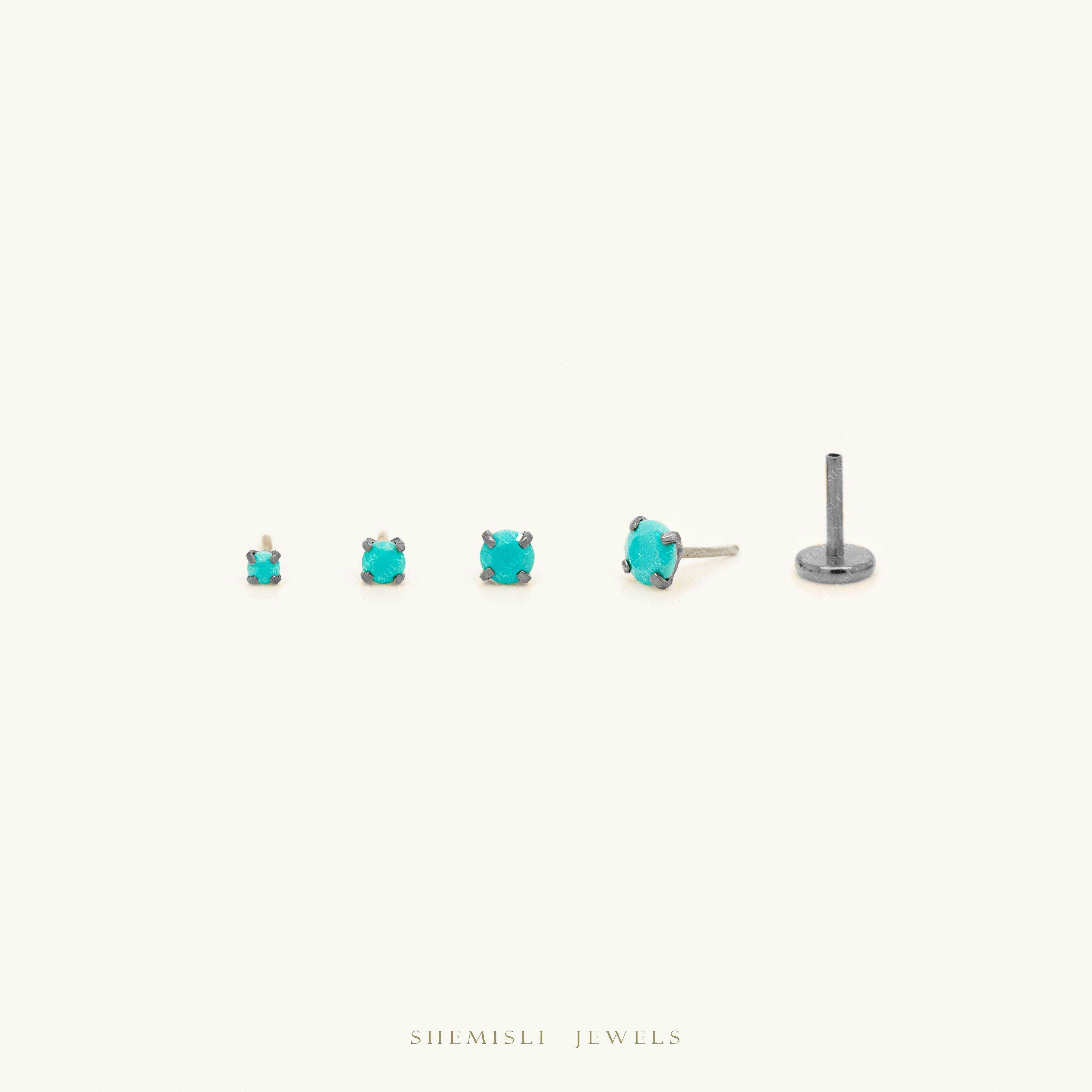 Tiny Turquoise Steel Threadless Flat Back Earrings, Nose Stud