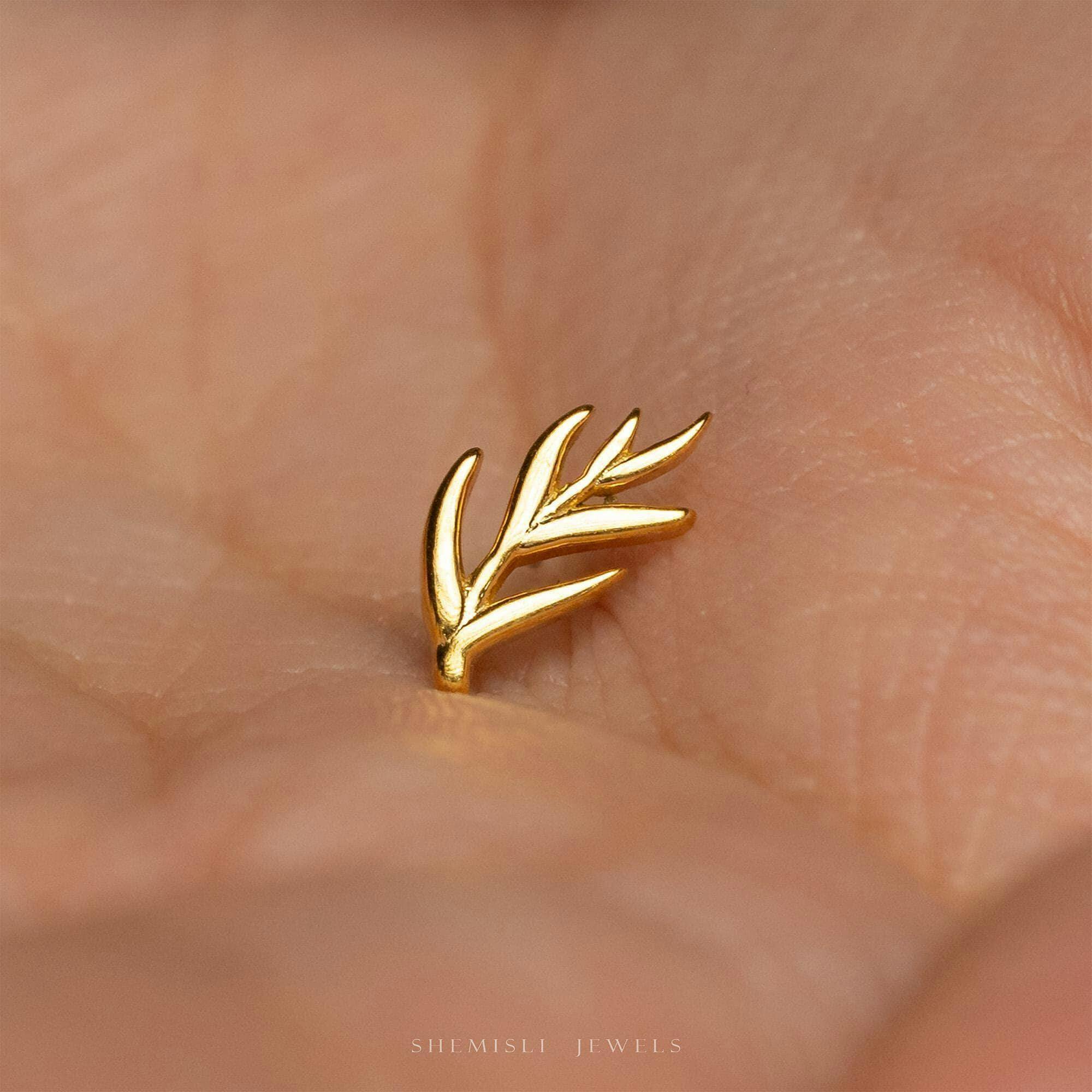 Tiny Willow Tree Leaves Threadless Flat Back Earring, 20,18,16ga,