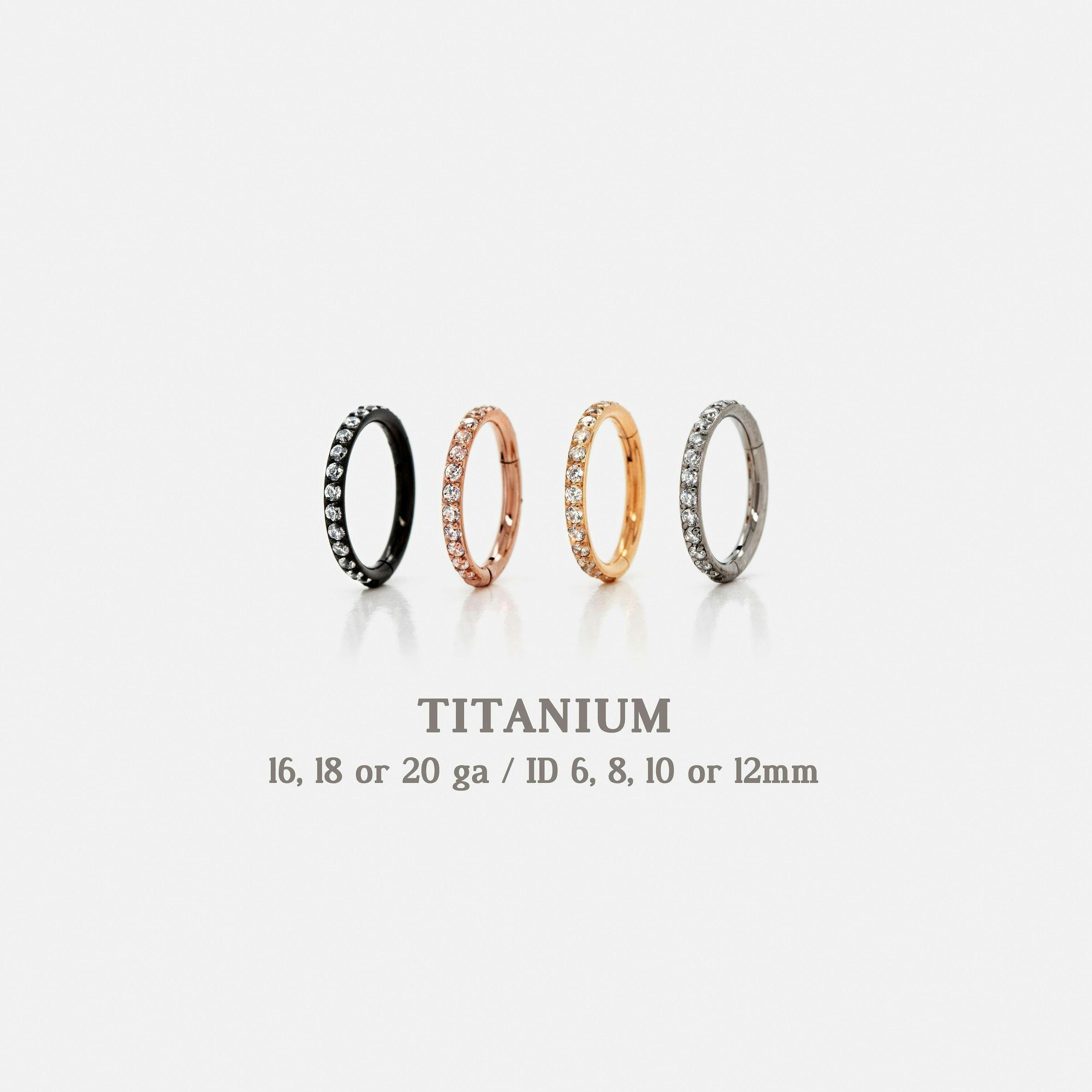 Titanium CZ Round Paved Earring Nose Ring, 20ga, 18ga,