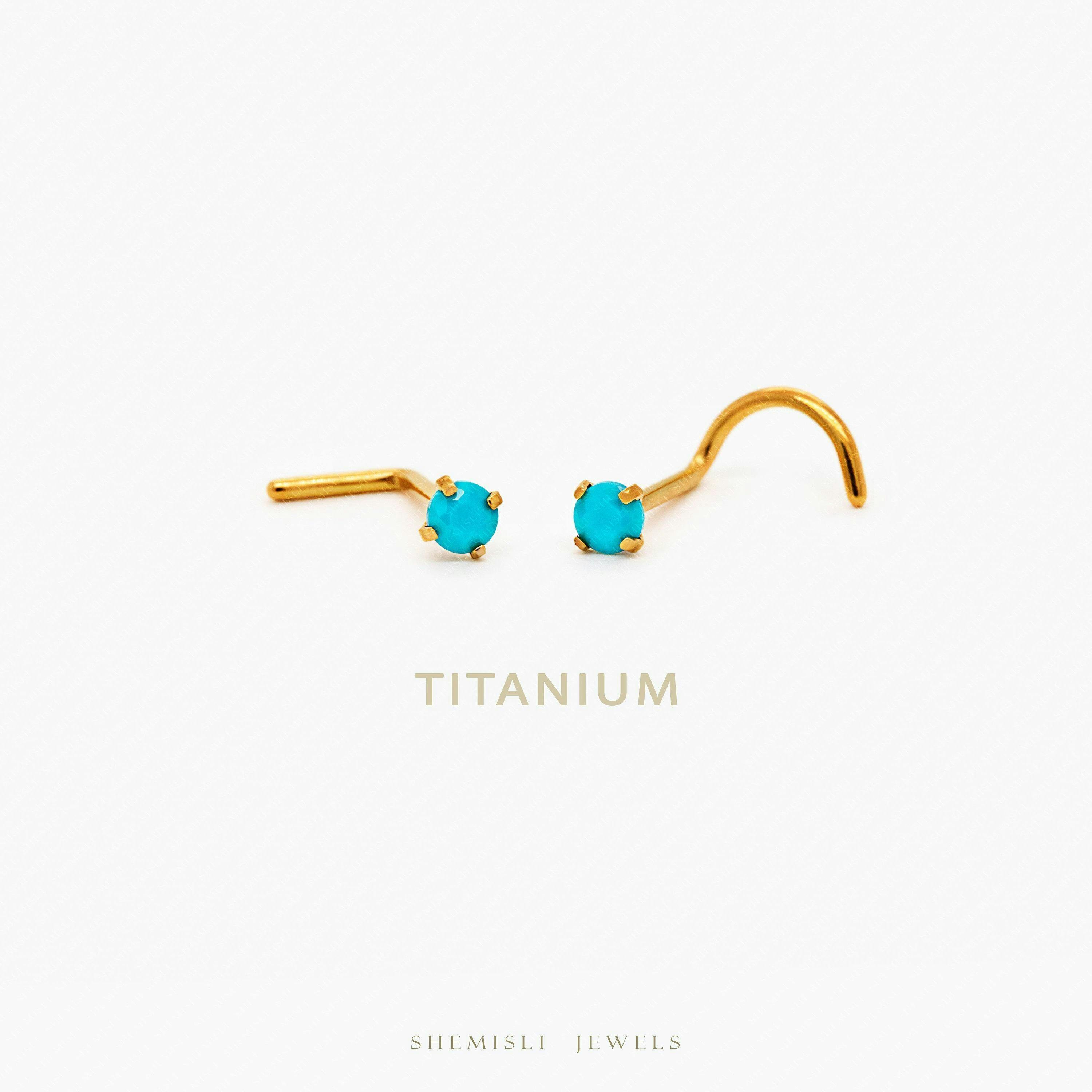 Turquoise Nose Stud, L Bend or Left Corkcrew, 20