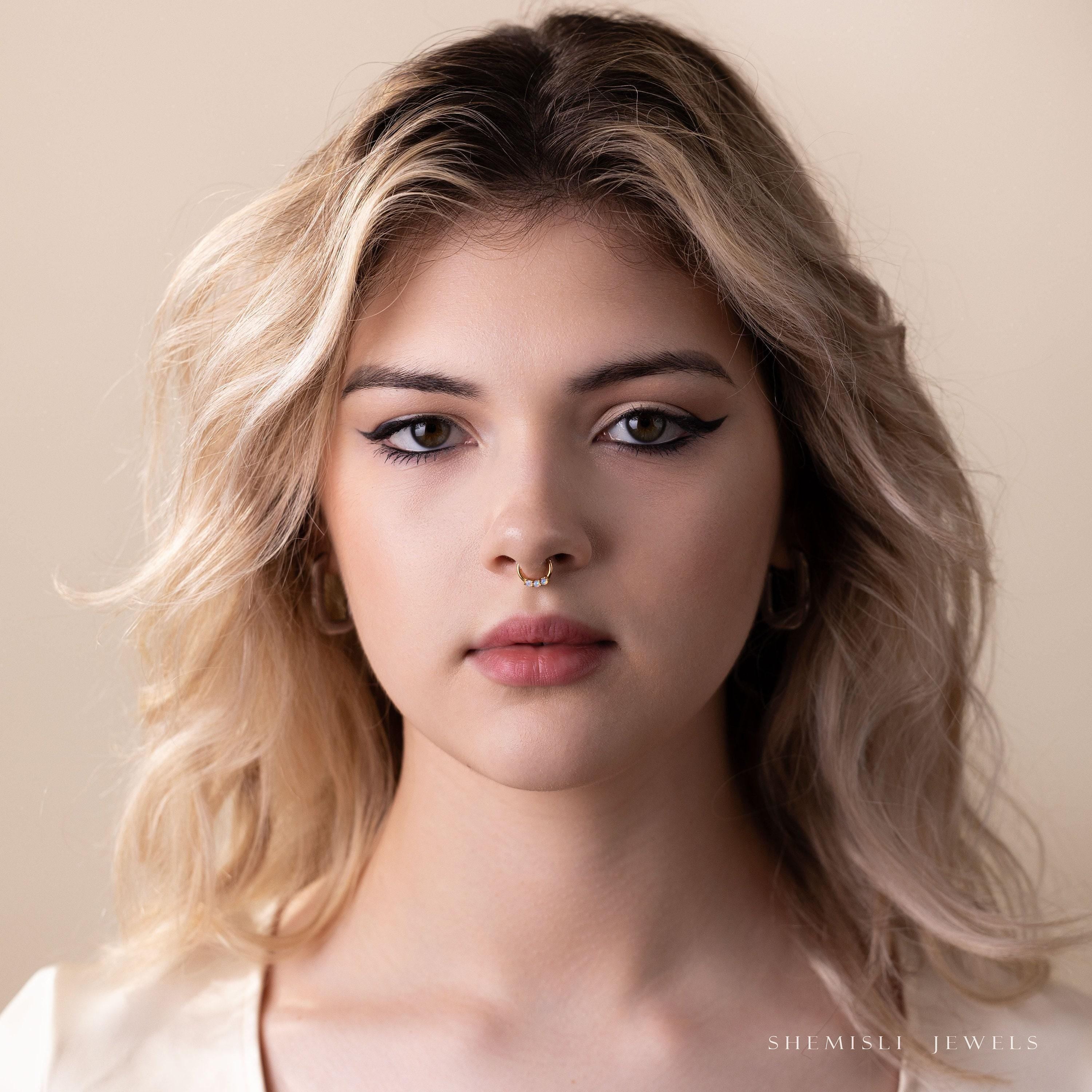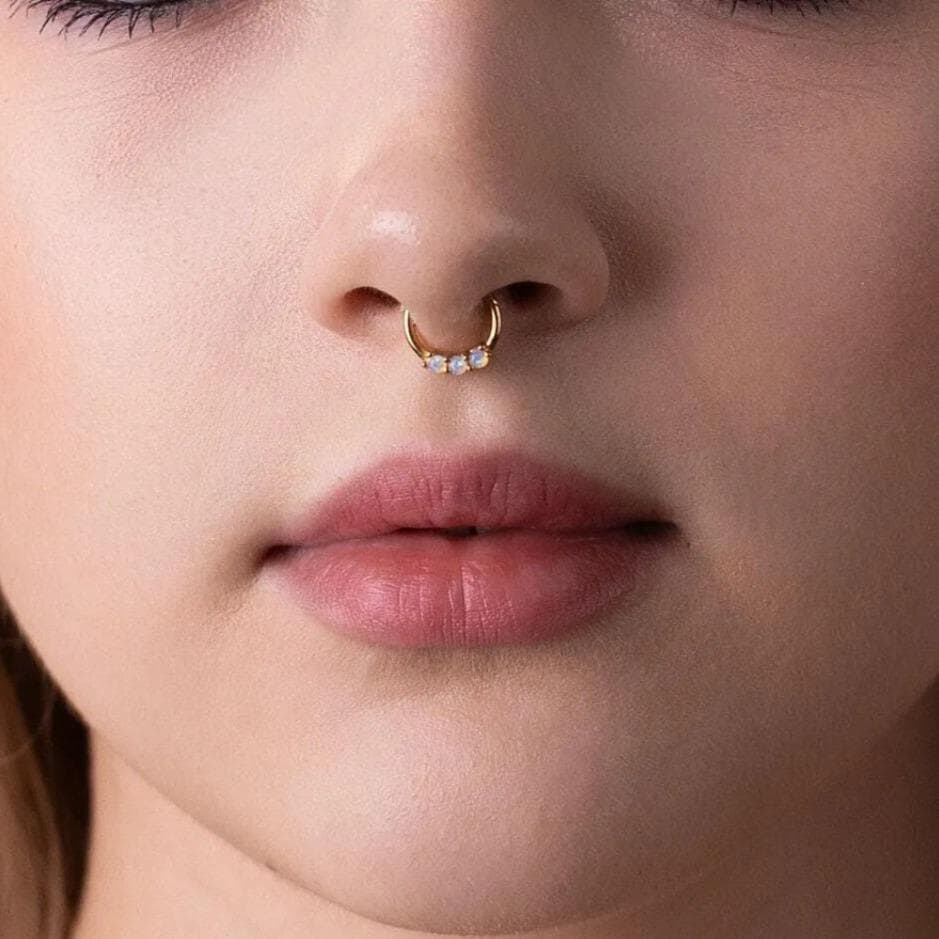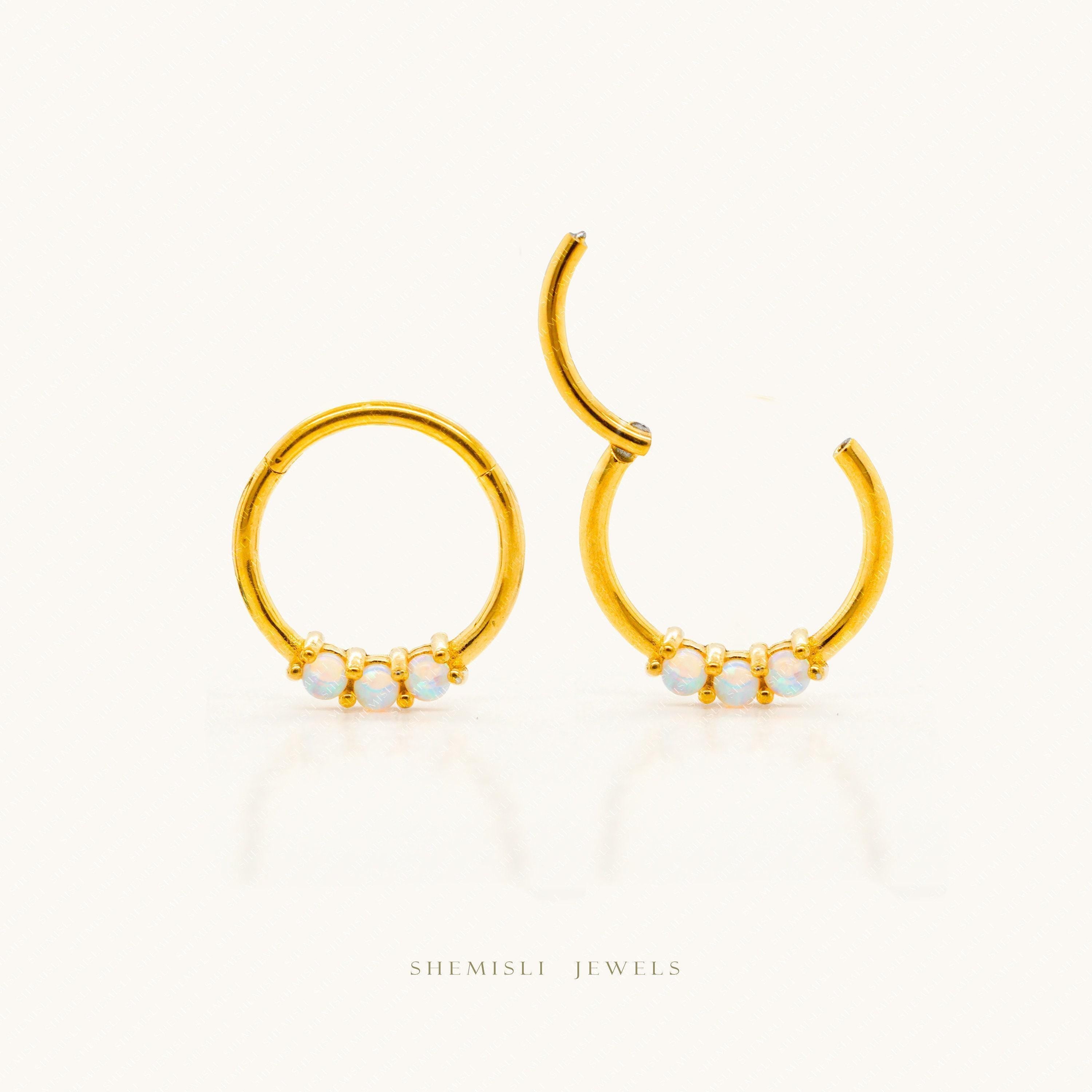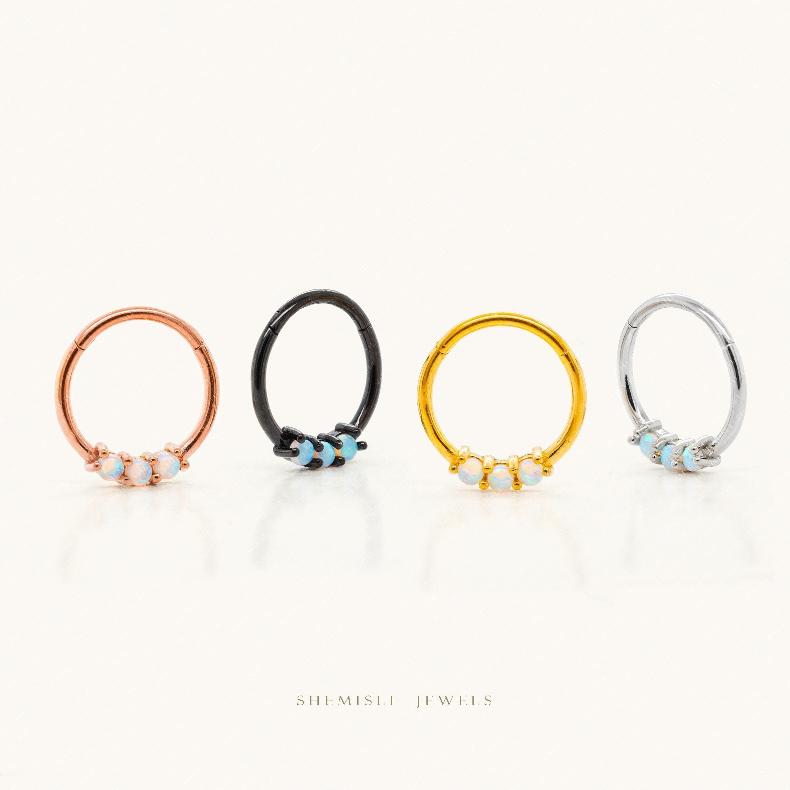 Triple Opal Nose Ring, Septum Hoop, Minimalist Style, A-SH660