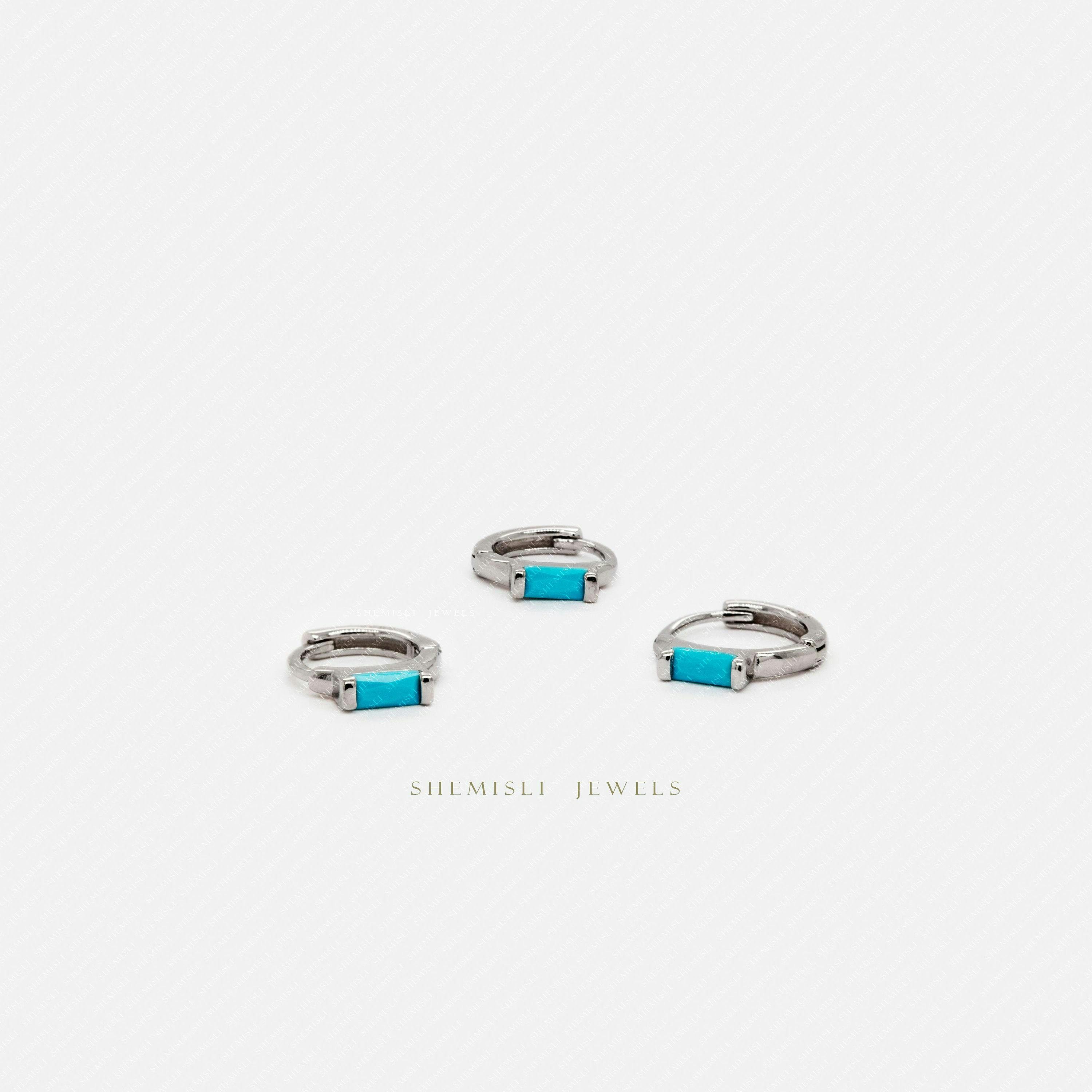 Turquoise Baguette Helix Hoop Earring, Huggies, Unisex, Gold, Silver